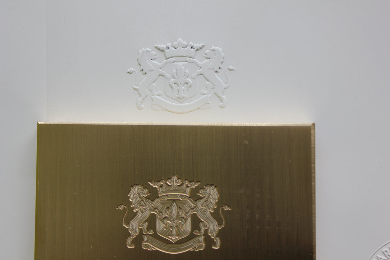 – Ein Blindprägestempel veredelt weiche Materialien wie Papier mit Ihrem Zeichen, Logo, Symbol, ohne dass dabei Farbe zum Einsatz kommt.