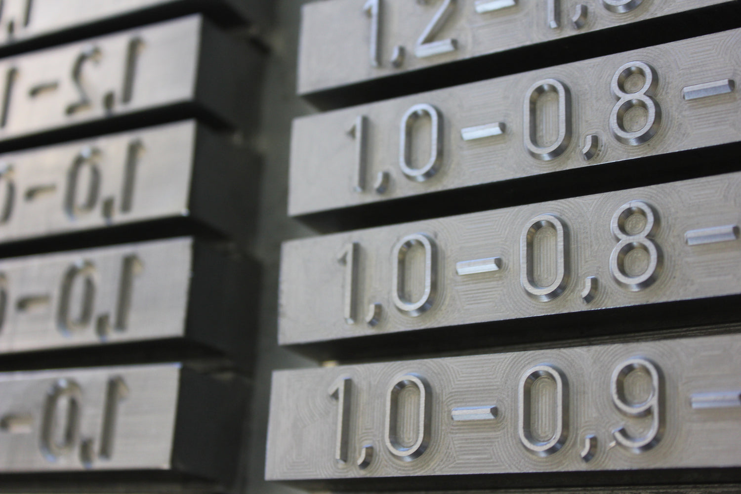 Prägestempel für Bezeichnungen, Datumsuhren und Wechseleinsätze für Blasformen und Spritzgießformen